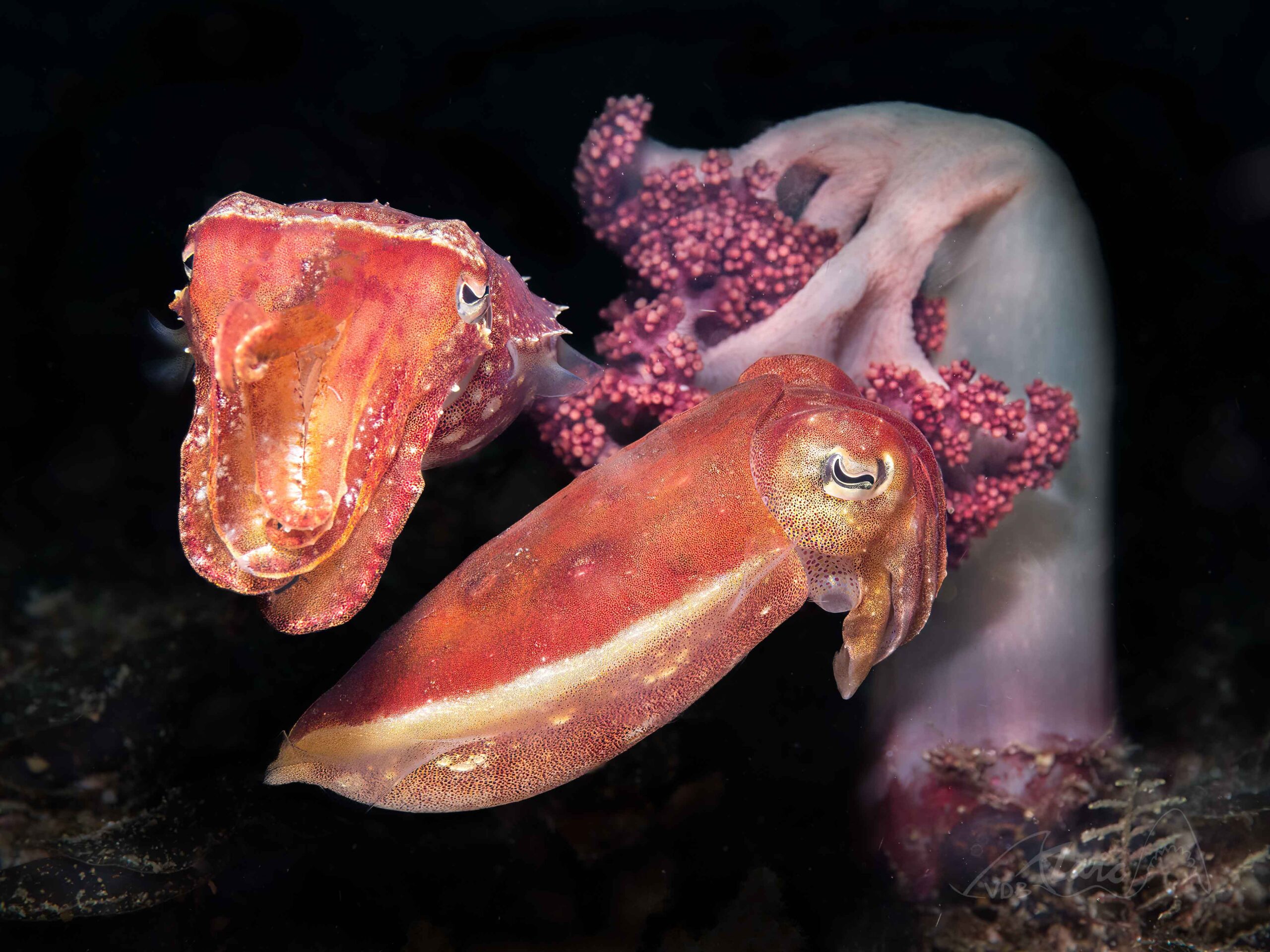 You will be amazed by the fast recovery of the hard-coral garden that grew in its place. For the night/dusk dive we can see the ma- ting dance of the very colorful mandarin fish, search for frogfish, seahorses, razorfish and octopus.