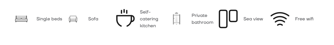 The cabins all have fully equipped kitchens for self-catering and private bathrooms with shower and WC.