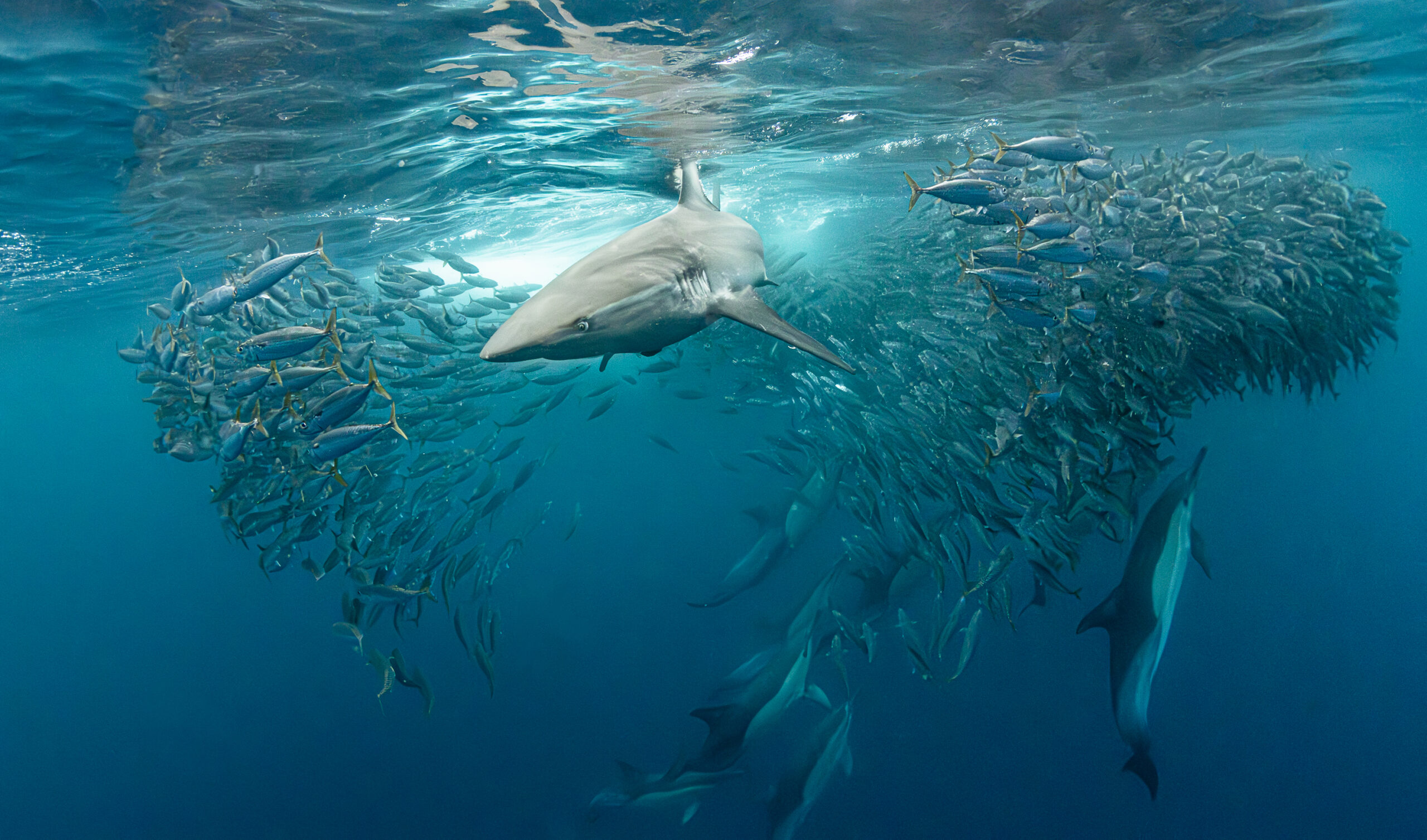 The diversity this trip has to offer is truly unparalleled. Diving birds, huge pods of dolphins (sometimes numbering in their thousands!), multiple shark species, migrating whales: it's all here. To encounter one of these species alone would be a joy, to see them all together hunting the same prey is just total madness.